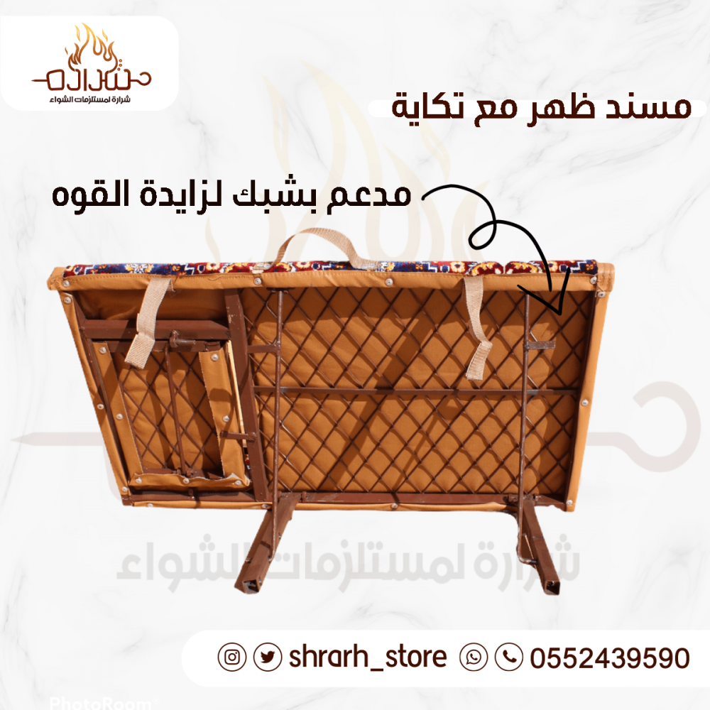 مسند ظهر جديد مع تكاية بتصميم مغاير للباحثين عن مساند ظهر مميزة لرحلات وخرجات ترفيهية مريحة، حيث يعتبر المسند أحد العناصر الأساسية في توفير الراحة اللازمة في البر والمتنزهات العامة، وهي من أهم ميزاته.
